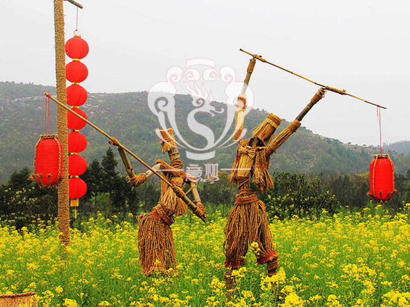 現在的精致稻草人藝術通常是由專業美術老師的造型放樣,然后由焊工師傅焊接出立體造型造型,然后以稻草或者稻草繩為材料編捆制作而成。